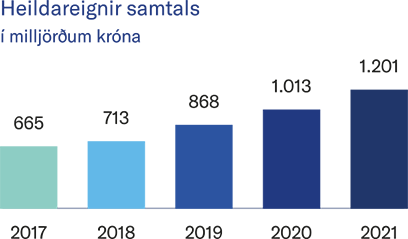 Heildareignir námu 1.201 milljarði króna um áramót og jukust þær um 188 milljarða króna á árinu. Fjárfestingatekjur námu 174 milljörðum. Sameignardeild sjóðsins er vel í stakk búin til að takast á við þær áskoranir sem fylgja hækkandi lífaldri sjóðfélaga.