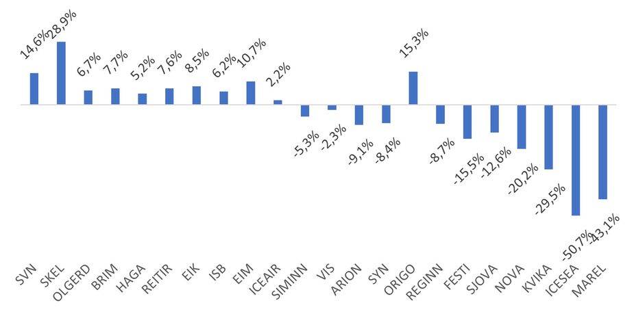 Þó ávöxtun á innlendum hlutabréfum í heild sé neikvæð það sem af er ári stendur innlent hagkerfi vel, töluverður hagvöxtur hefur mælst hér á landi og einkaneysla verið sérlega kröftug. Góð staða er á helstu útflutningsgreinum landsins; ferðaþjónustan hefur tekið vel við sér og er komin á svipaðan stað og fyrir heimsfaraldurinn, góð loðnuvertíð er að baki og sjávarafurðarverð er í hæstu hæðum ásamt því að hátt hrávöruverð, þ.e. álverð, kemur sér vel fyrir orkufyrirtækin. Nokkur félög hafa því skilað jákvæðri ávöxtun og almennt má segja að góður gangur hefur verið í rekstri félaga, hvort sem litið er til innlenda bankakerfisins eða innlendra rekstrarfélaga, sjávarútvegsfélaga eða félaga í flutningastarfsemi. Töluverðum fjármunum hefur verið skilað til fjárfesta í formi arðgreiðslna, endurkaupa á eigin hlutabréfum og töluvert hefur verið um sölur eigna af efnahagsreikningum félaga sem mynda söluhagnað, þar með talið sölu Símans á Mílu, Origo á Tempo og innviðum Sýnar.